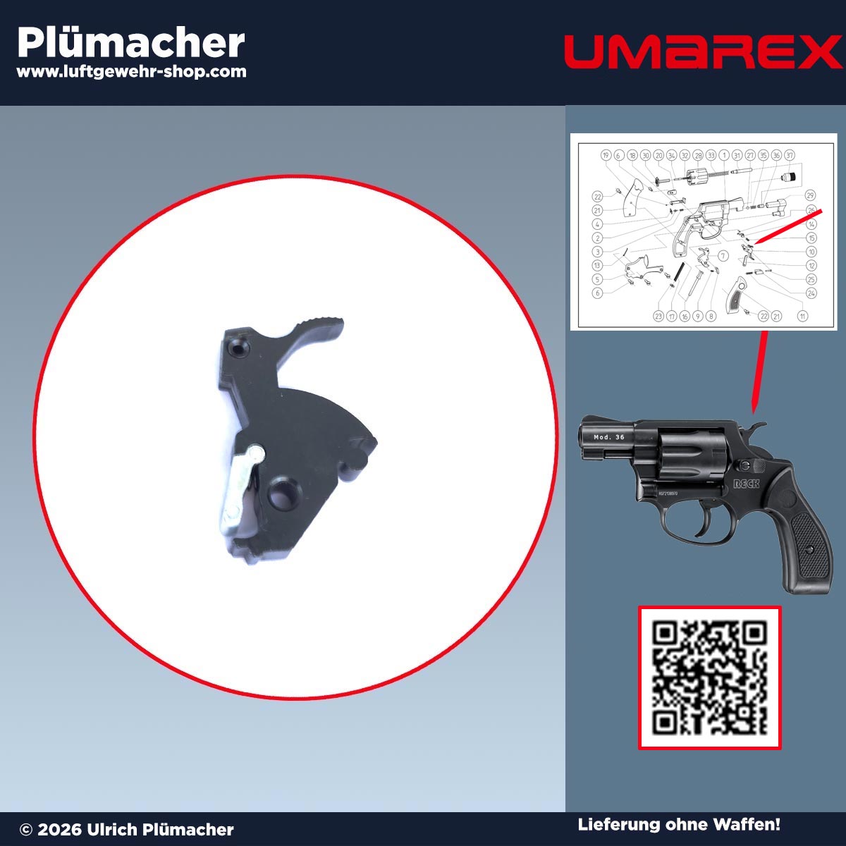 Durch seine exakte Passform eignet sich der Hahn zudem als Ersatzteil für den Umarex Revolver Modell 36. Wenn Ihr Revolver Zündprobleme zeigt, der Hahn beschädigt ist oder Abnutzungserscheinungen hat, sorgt dieser Ersatz-Hahn für eine sichere und zuverlässige Funktion.